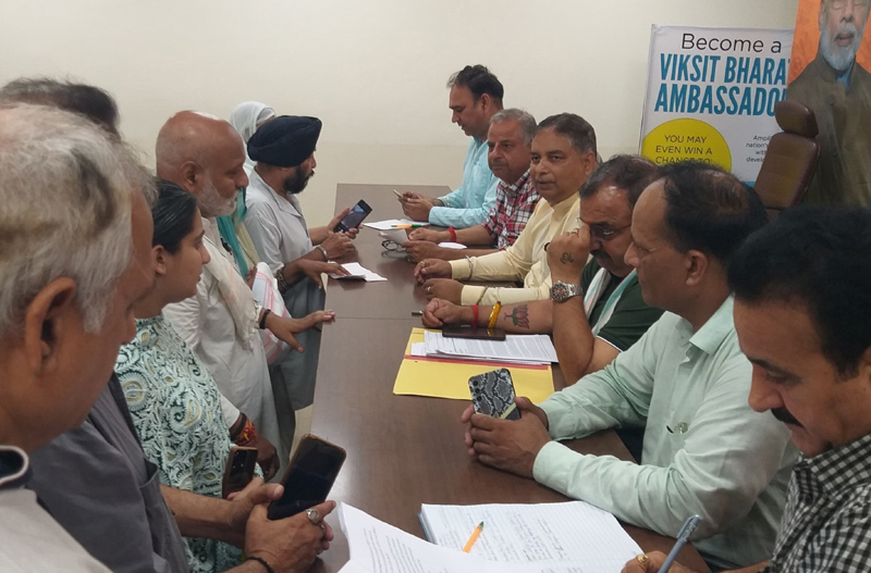 JAMMU, July 24: Sat Sharma, former BJP president and former Minister, Prof Gharu Ram, DDC and former MLA, Ashwani Sharma, former MLA, Ch Vikram Randhawa, former MLC, Jeet Angral, former JMC Chairperson, and TK Sharma, co-convenor Swachh Bharat Abhiyan listened to the public grievances in a Janta Darbar, held at BJP Headquarters, Trikuta Nagar, Jammu.