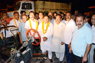 JAMMU, May 7: Fulfilling the demand of residents of Subash Nagar and Toph Sherkhania areas of Jammu West, State president, BJP and MLA Sat Sharma (CA) kickstarted macadamization works from Subash Nagar Chowk. Accompanied by a large number of people including officials of PWD (R&B), Sharma started the major infrastructural work in the presence of a large number of people including many local residents and political activists.