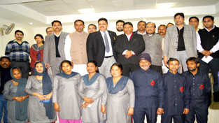 JAMMU, Feb 5: A function was organized at Town Hall to distribute uniforms to SKCs of Jammu West Assembly Constituency. On the occasion MLA Jammu West Sat Sharma (CA) was chief guest. In his welcome address Commissioner, JMC Kiran Wattal informed that it was long pending demand of SKCs to provide winter uniform to them. He also lauded the role of SKCs and assured to redress all the genuine issues of SKCs related to their welfare and reiterated that it is the prime responsibility of the Corporation to keep Jammu neat and clean.
