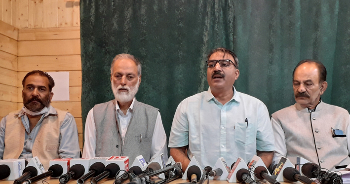 Satish Mahaldar, Chairman, J&K Peace Forum at a press conference in Srinagar.