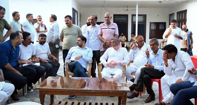 Minister Satish Sharma holding a meeting at Chhamb on Saturday.