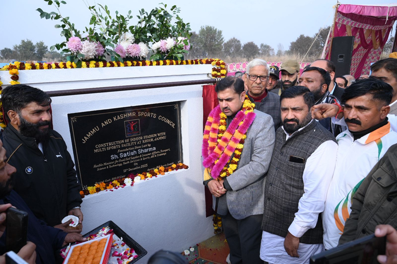 JAMMU, DECEMBER 13: Minister for Food, Civil Supplies & Consumer Affairs (FCS&CA), Transport, Information Technology, Youth Services and Sports, Satish Sharma, today inaugurated the Rs 3 crore Indoor Stadium with multi-sports facility at Khour, Jammu, marking a significant milestone in strengthening the sports infrastructure in border areas of the Union Territory.