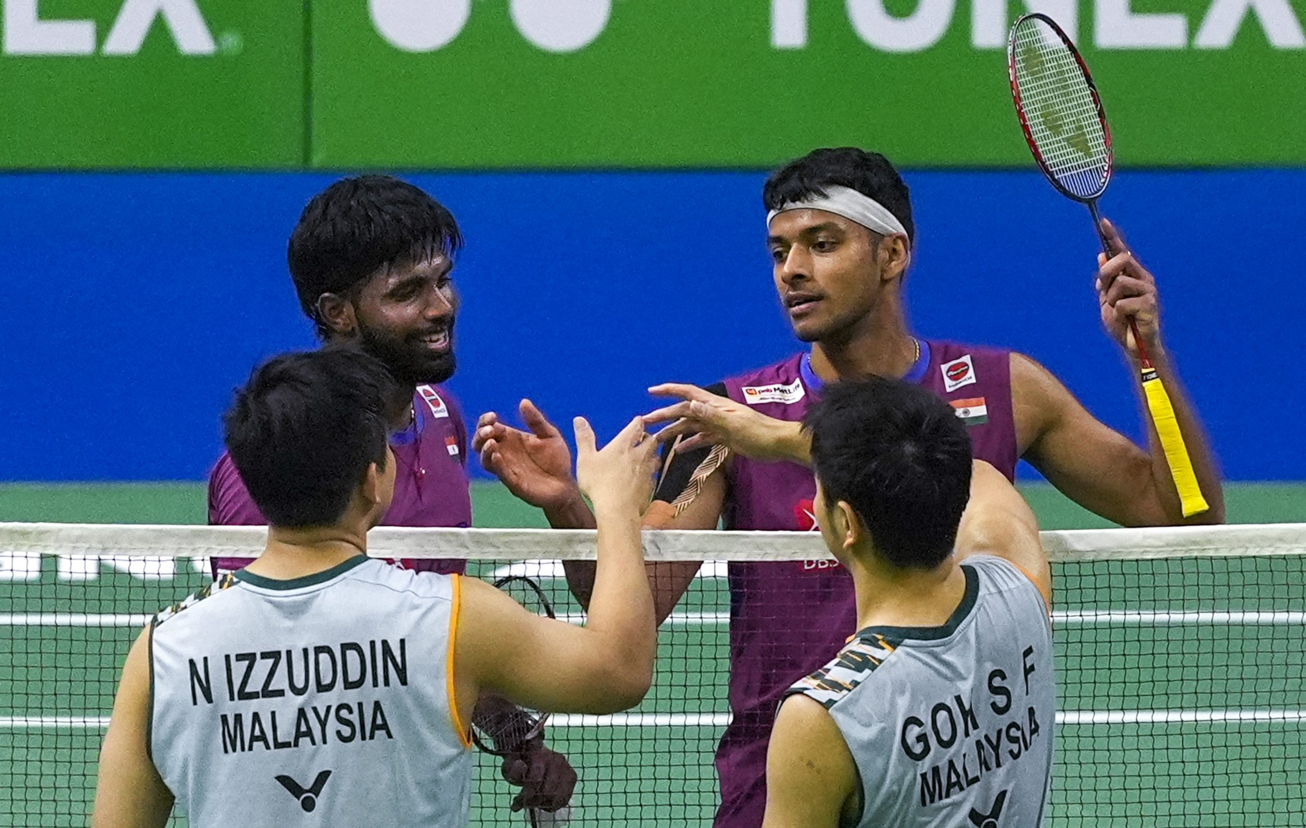 The tall Indians levelled the score at 13-13, but the Malaysians pulled ahead with a three-point cushion at 17-14, after Chirag was warned for delaying. Soon, the score was 20-14, following six straight points, and the Malaysians sealed the match with a perfect ballooning serve to the backline.