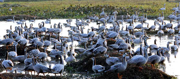 Of late the relation between the wildlife authorities and locals further became strained due to presence of large number of bar-headed geese. The bar-headed geese were first reported in 2004 and have been regular winter visitors since then. This bird has invited the ire of the locals as it voraciously devours the tender shoots of wheat incurring heavy loss to the farmers.