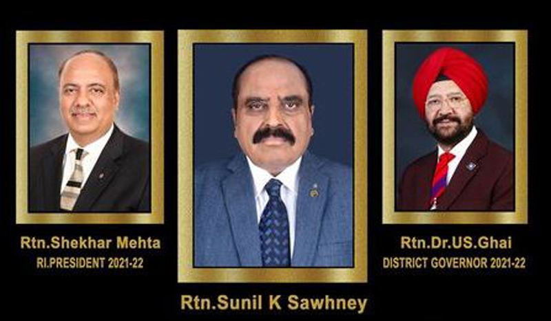 Sawhney will serve the RID 3070 in 2021-22 under the leadership of Dr. U.S Ghai as District Governor and Shekhar Mehta as International President.
