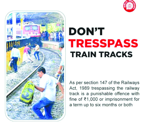 Education: Nelson Mandella once remarked – Education is the most powerful weapon which you can use to change the world. This education might not happen in schools and colleges, but at homes and the society in which we live. This might be by means of counselling cum awareness sessions or using requisite signages also. The people need to be educated in the form they can understand, in the language they can comprehend and in the medium to which they can relate. They need to understand the dangers this unauthorised trespassing poses to them, their family and the society at large. For this civil society and media can come in quite handy. Civil society i.e. the NGOs are very close to the people and, therefore, they command acceptability among their target group. They need to carry out IEC (Information, education and counselling) campaigns by means of awareness sessions, holding theme-based essay/painting competitions and nukkad naataks which may be done in the folk language of that region. Recently in Ahmedabad a RASTA campaign was launched in collaboration with civil society groups to spread road awareness through quiz, poster, slogan competitions. The campaign was a huge success. An exercise on similar lines can be done with respect to trespassing also.