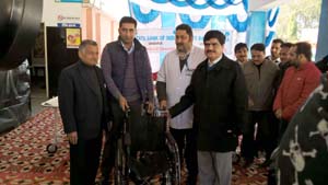 In the presence of District Development Commissioner Udhampur Dr Shahid Iqbal Chaudhary, the stretchers and wheel chairs were handed over to the Chief Medical Officer, Udhampur, Dr Chander Mohan at District Hospital Udhampur. Dr Narinder Bhatial (Medical Supdt.) and other Staff members of the hospital were also present on the occasion.