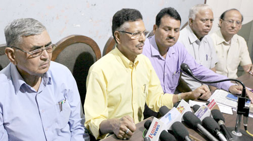 Leaders of SC Welfare Association addressing a press conference at Jammu on Thursday. —Excelsior/Rakesh
