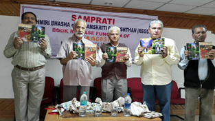 Scholars releasing two books of Rajinder Aagosh at K L Saigal Hall Jammu on Sunday.