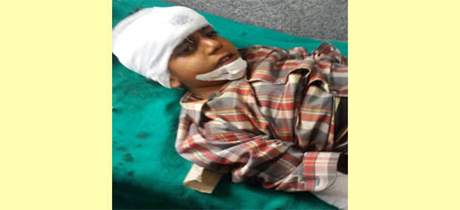 A school student injured in Pakistan shelling at Shahpur, Poonch on Wednesday. —Excelsior/Harbhajan