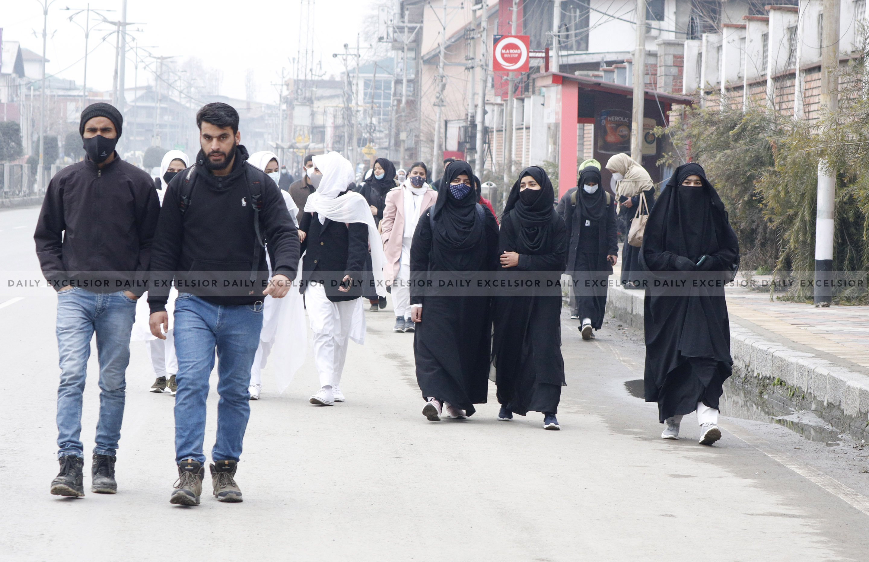 SRINAGAR, Mar 2: After an almost three-year-long gap, school children in Kashmir with that little leap in their steps reached campuses across the valley on Wednesday in their uniforms, face masks, carrying backpacks and broad smiles on their faces.