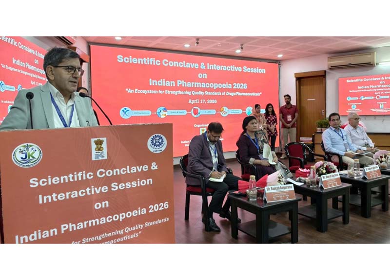 JAMMU, Apr 17: To strengthen drug quality standards and regulatory coordination, the first-ever scientific conclave and interactive session on the Indian Pharmacopoeia (IP) 2026 in Jammu and Kashmir was held at CSIR–Indian Institute of Integrative Medicine (IIIM), Jammu.