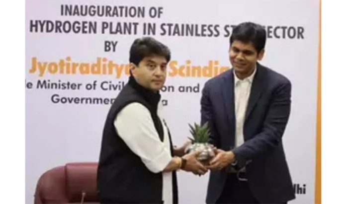 NEW DELHI, Mar 4 : Union Minister Jyotiraditya M Scindia on Monday inaugurated the country’s first green hydrogen project of the stainless steel sector in Hisar, Haryana set up by Jindal Stainless Ltd.