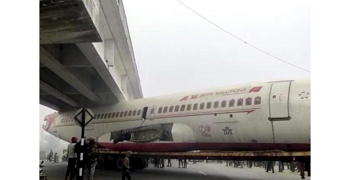 MOTIHARI (Bihar), Dec 30: A scrapped plane, which was being transported from Lucknow to Assam on a truck, got stuck beneath a bridge in Bihar’s East Champaran district, causing a massive traffic jam, police said.