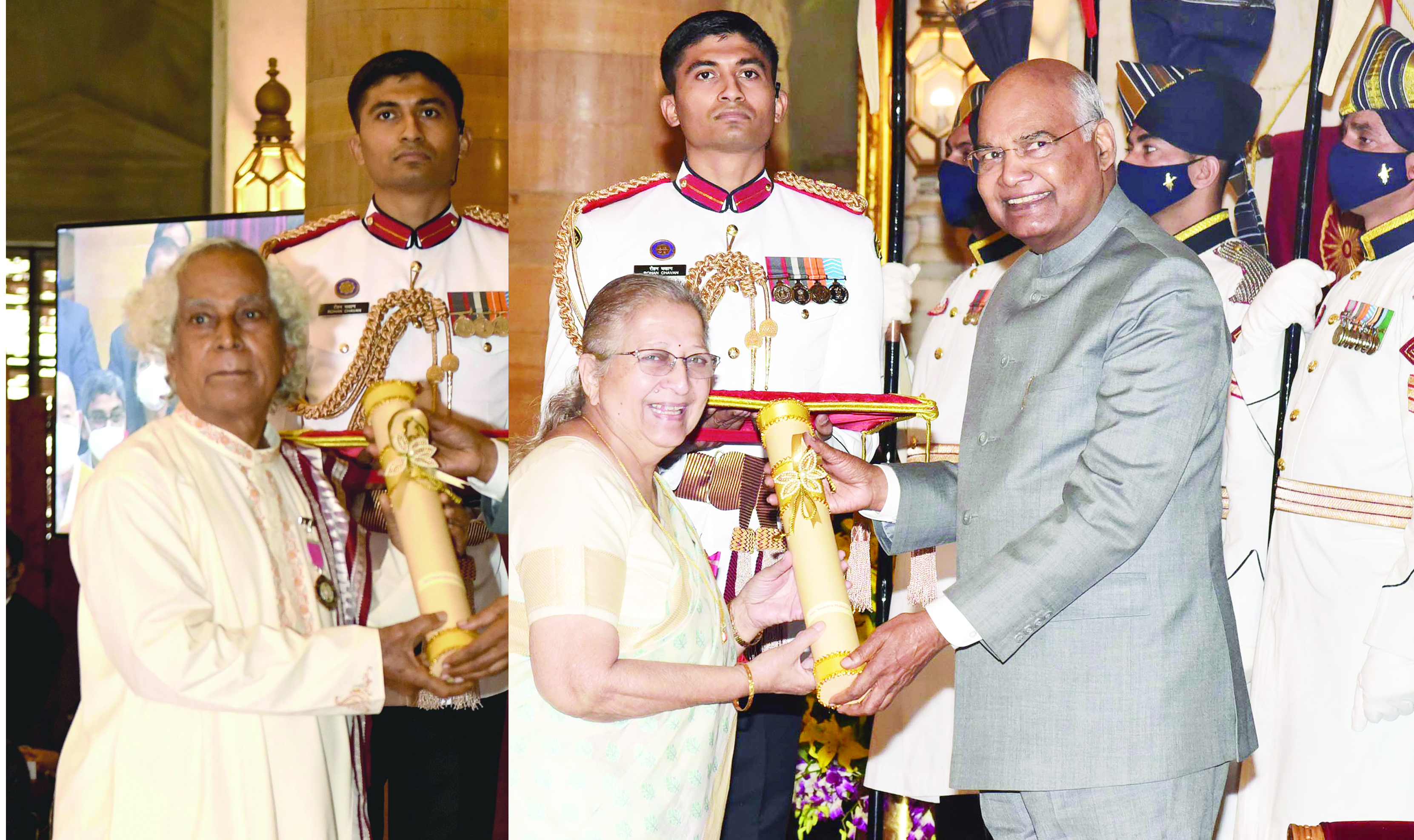 Vice President M Venkaiah Naidu, Prime Minister Narendra Modi and Union Home Minister Amit Shah were among the dignitaries present during the civil investiture ceremony to give away the awards.