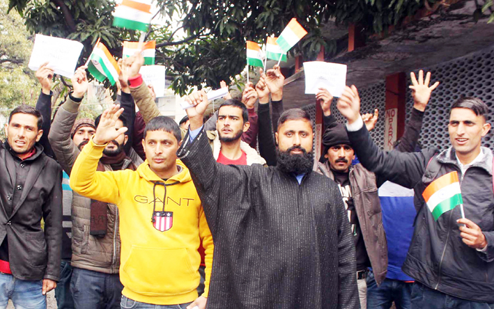 JAMMU, Jan 28: The aspirants of State Disaster Rescue Force (SDRF) today held protest here at Press Club to project their demands.