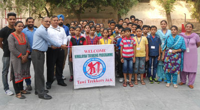 JAMMU, June 4: Principal of Shiksha Niketan Senior Secondary  School, Jeevan Nagar Rameshwar Mengi  flagged off the second batch of the school for J&K Himalayan Trekking  Programme being organized by Tawi Trekkers J&K in Moungri area of Udhampur district.