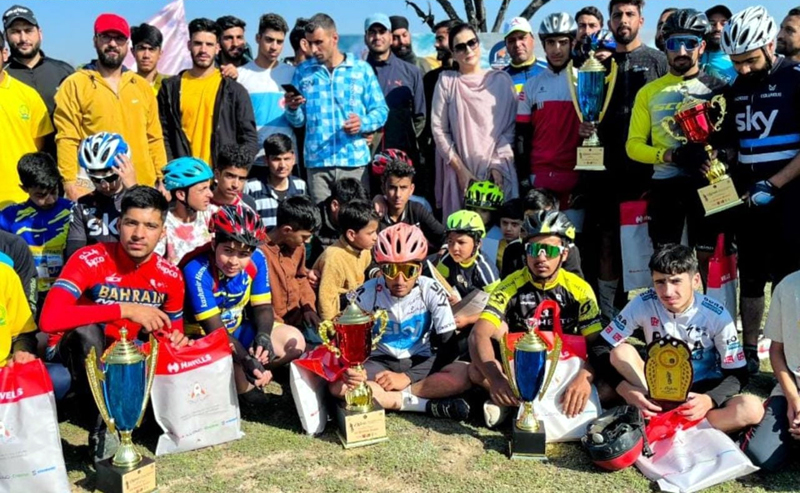 Secretary J&K Sports Council, Nuzhat Gul along with cyclists posing for group photograph during function at Budgam. By Daily Excelsior - June 4, 2023 Share FacebookTwitterWhatsAppPinterestLinkedinCopy URLTelegramEmailTumblrReddItPrintKoo Secretary J&K Sports Council, Nuzhat Gul along with cyclists posing for group photograph during function at Budgam. Secretary J&K Sports Council, Nuzhat Gul along with cyclists posing for group photograph during function at Budgam. Follow our WhatsApp channel