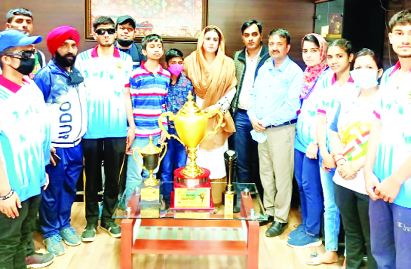 Secretary JKSC, Nuzhat Gul posing for photograph with winning J&K Blind & Deaf Judo team at Jammu. By Daily Excelsior - March 25, 2021 Share FacebookTwitterWhatsAppPinterestLinkedinCopy URLTelegramEmailTumblrReddItPrintKoo Secretary JKSC, Nuzhat Gul posing for photograph with winning J&K Blind & Deaf Judo team at Jammu. Secretary JKSC, Nuzhat Gul posing for photograph with winning J&K Blind & Deaf Judo team at Jammu. Follow our WhatsApp channel