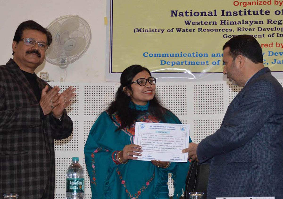 Secretary PHE Farooq Ahmad Shah distributing certificates to participants at a valedictory function of training course for engineers on Friday.