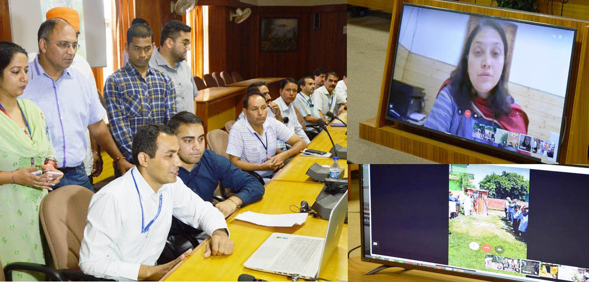 Secretary, RDD, Sheetal Nanda, interacting with DDC Udhampur and his team through video conferencing on the completion of mission ODF.