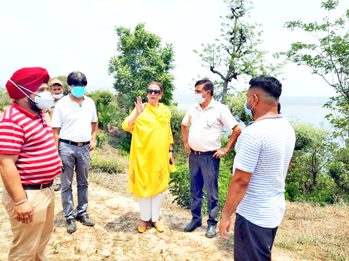 Secretary Sports Council Nuzhat Gull along with DDC chairperson, Col Mahan Singh inspecting site for developing Water Sports Centre at Basohli on Thursday.