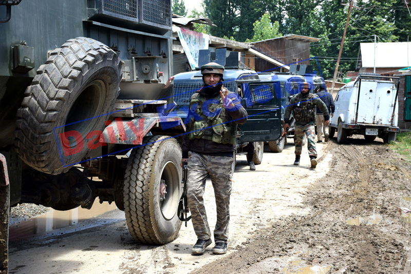 Security forces at the encounter site at Panzgam in Awantipora on Saturday. —Excelsior/Younis Khaliq By Daily Excelsior - May 18, 2019 Share FacebookTwitterWhatsAppPinterestLinkedinCopy URLTelegramEmailTumblrReddItPrintKoo Security forces at the encounter site at Panzgam in Awantipora on Saturday. —Excelsior/Younis Khaliq Security forces at the encounter site at Panzgam in Awantipora on Saturday. —Excelsior/Younis Khaliq Follow our WhatsApp channel