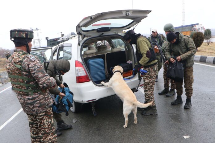 Police personnel from the police station Nishat, along with CRPF units, were seen conducting thorough checking of vehicles and monitoring movement at prominent entry and exit points.