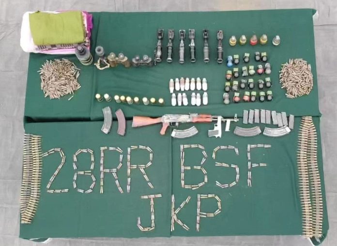 “During the search operation, a huge cache of arms, ammunition and other war-like stores were recovered” BSF Kashmir posted on X.