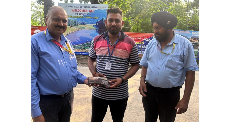 JAMMU, July 16: A bag of a devotee of Shri Amarnath ji containing cash of Rs 9000, cards and other belongings was found by SI Rashpal Singh of Security wing deployed at frisking point at yatri Niwas Bhagwati Nagar.