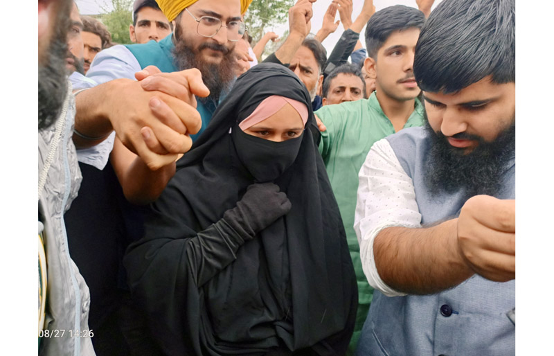 Seerat Barkati daughter of Sarjan Barkati filed nomination papers on behalf of her jailed father from Shopian constituency in South Kashmir on Tuesday.