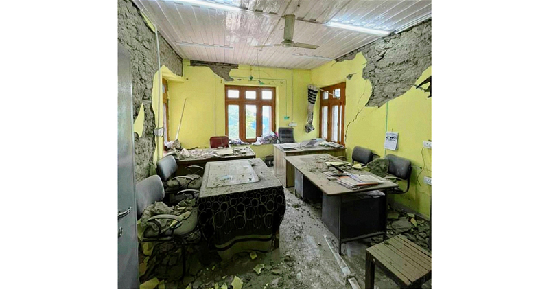 Earthquake tremors left debris of broken plaster in an office in Doda on Tuesday. — Excelsior/Tilak Raj