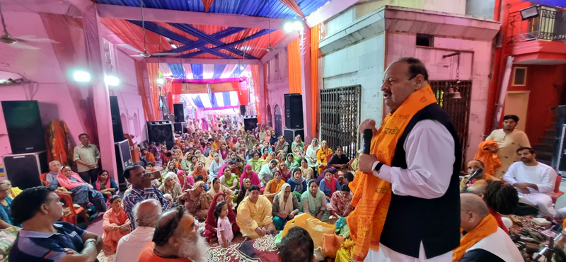 Senior BJP leader Devender Singh Rana addressing a religious congregation at Jammu.