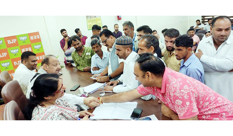 Senior BJP leader Devender Singh Rana listening public grievances at party headquarter on Friday. By Daily Excelsior - July 28, 2023 Share FacebookTwitterWhatsAppPinterestLinkedinCopy URLTelegramEmailTumblrReddItPrintKoo Senior BJP leader Devender Singh Rana listening public grievances at party headquarter on Friday. Senior BJP leader Devender Singh Rana listening public grievances at party headquarter on Friday. Follow our WhatsApp channel