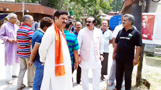 Senior BJP leader & MLC, Ajatshatru Singh taking stock of arrangements at holy shrine of Kheer Bhawani at Tulla Mulla on Saturday.