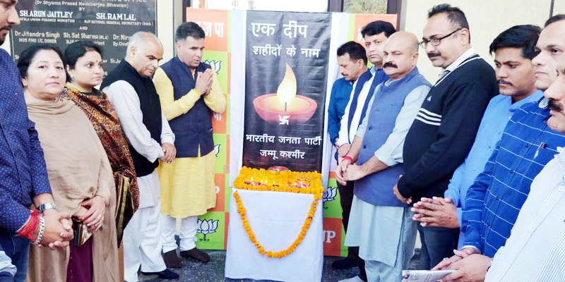 Senior BJP leaders observing ‘Ek Deep Shaheedon Ke Naam’ at Jammu. By Daily Excelsior - November 8, 2018 Share FacebookTwitterWhatsAppPinterestLinkedinCopy URLTelegramEmailTumblrReddItPrintKoo Senior BJP leaders observing 'Ek Deep Shaheedon Ke Naam' at Jammu. Senior BJP leaders observing ‘Ek Deep Shaheedon Ke Naam’ at Jammu. Follow our WhatsApp channel