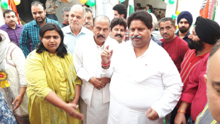 Senior Congress leader, Raman Bhalla along with newly elected Corporator, Bhanu Mahajan during a function at Jammu on Sunday.