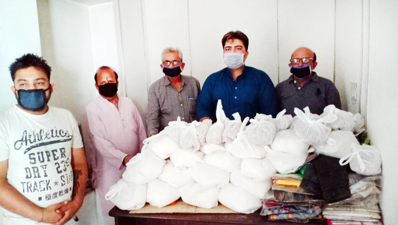 Senior Congress leader Varun Magotra along with his team of volunteers during distribution of dry ration and essential commodities among needy families.