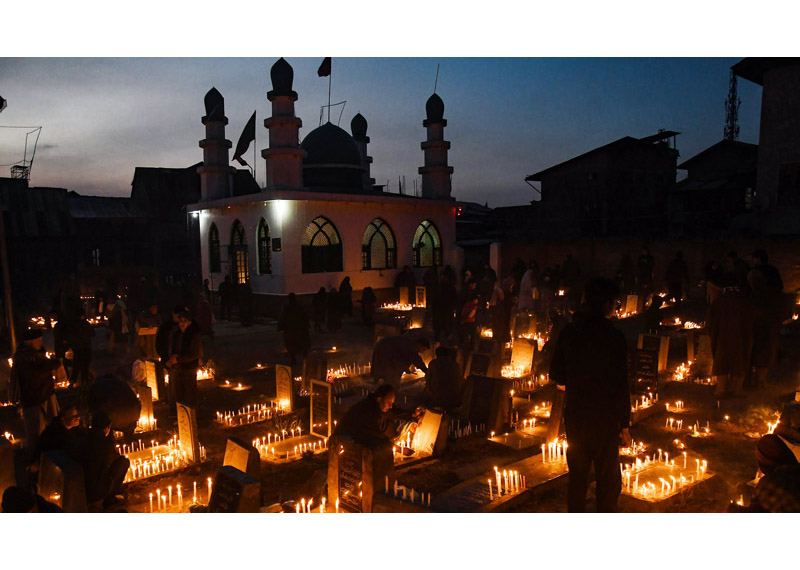 SRINAGAR, Feb 13: Thousands of people are observing night long prayers in Masjids and shrines across Kashmir on the occasion of Shab-e-Barat.