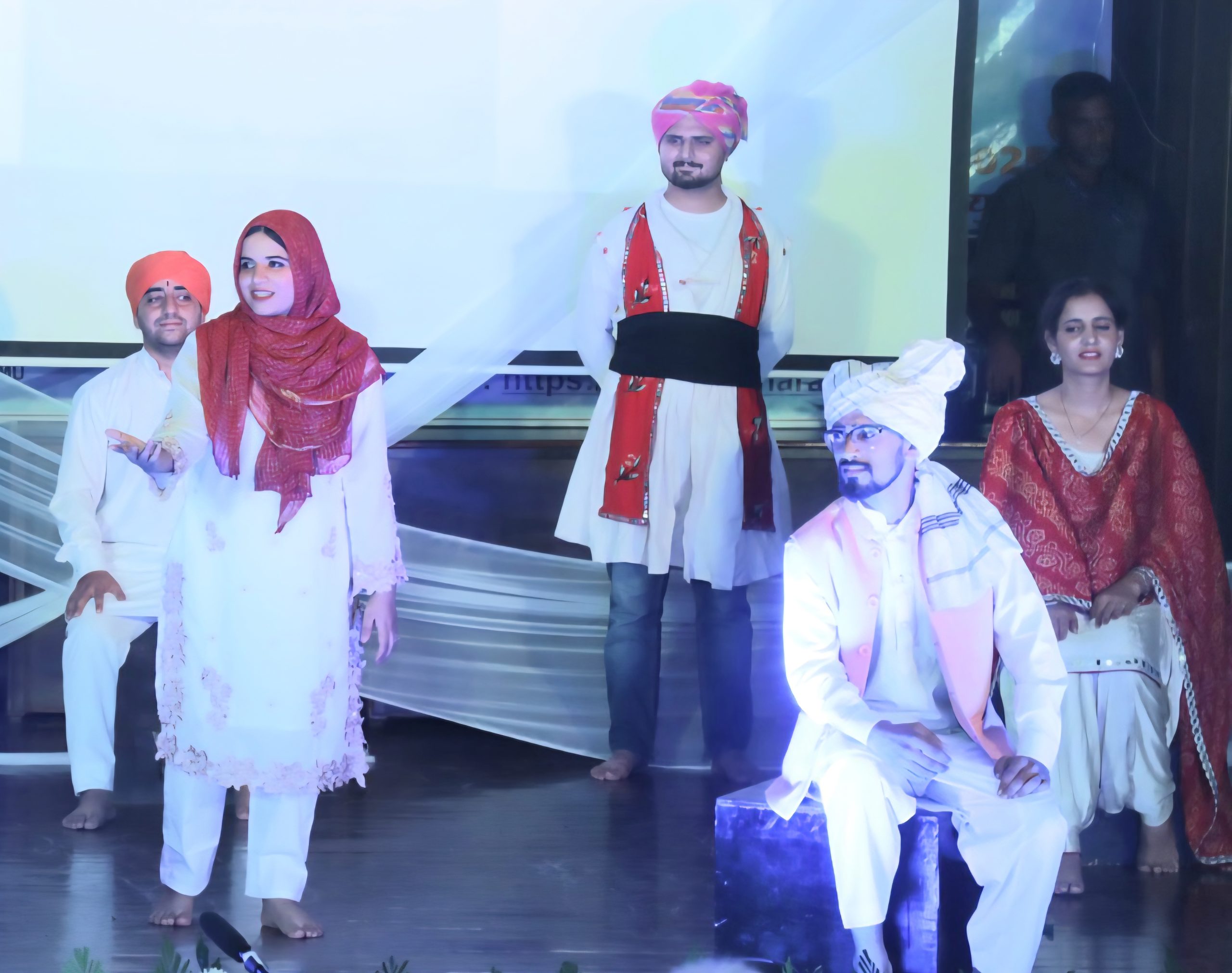 It all begins with the two anchors Shyna and Divya, entering the stage, with soulful music playing in the background, and start reciting the opening lines of Shakespeare’s Sonnet 18, ‘Shall I compare thee to a Summer’s day’. As both of them complete their 14 line recital, they are followed by other actors on stage who render the same poem in their respective native languages, Ajay Singh in Dogri, Umar in Gojri, Amanpreet in Punjabi, Ajaz Ahmed in Pahari, Ranjeet in Padari, Harsh Manhas in Khashki, besides Vivek Sharma in Hindi and Mahalqa in English. They are all wearing their traditional costumes, typical of their regional and ethnic background. The feeling and lyricism of their rendering makes one forget that the lines that they are reciting actually originated from the pen of an English poet more that 400 years ago.