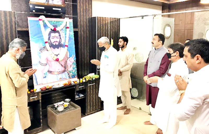 JAMMU, Apr 26: Following the social distancing, the birth anniversary of Lord Parshuram Ji was celebrated by State Vice President BJP and former Minister, Sham Lal Sharma along with President of Jammu Kashmir High Court Bar Association and BJP spokesperson, Abhinav Sharma at Raipur Domana, here today.