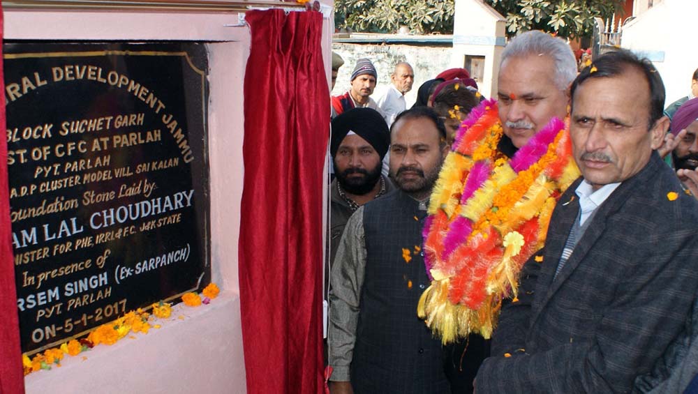 JAMMU: Minister for PHE, Irrigation & Flood Control Sham Lal Chaudhary today laid the foundation stone of Common Facility Centre (CFC) near Gurudwara at Parlah in Suchetgarh.