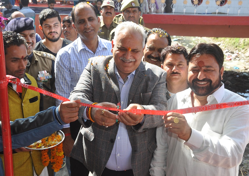 JAMMU: Minister for PHE, Irrigation & Flood Control Sham Lal Choudhary today inaugurated 30 ft span steel bridge on Main Ranbir Canal at Kotli Shah Dola in RS Pura.