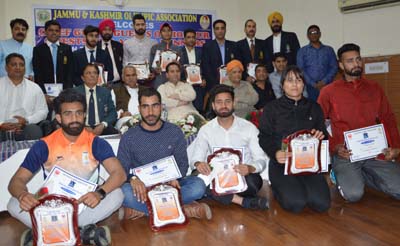 Those who were honoured on the occasion included Olympian Shooter Chain Singh, international cricketer Parvez Rasool, Footballer Arun Kumar Malhotra, Volleyball player Saqlain Tariq, Table Tennis ace Ajay Sharma, former international Wushu player and chief coach India Wushu Team Kuldeep Handoo, Senior Basketball coach Aman Sharma, former ace athlete and lecturer Physical Education Nirmal Singh, cyclist Mohd Abdul Teli, Wushu players Surya Bhanu Partap Singh and Rajinder Singh, fencing player Vansh Mahajan, Judo players Shweta Thakur and Danish Sharma, Kho-Kho player Shubham Singh Bhau and athlete Amarjeet Singh.