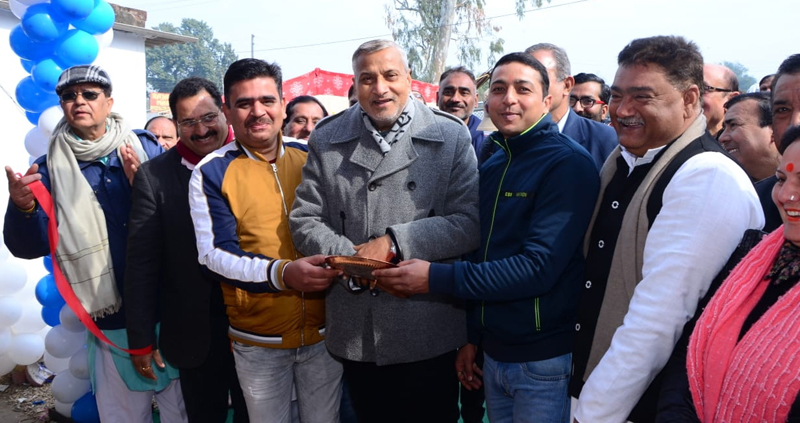 JAMMU, Jan 25: Former minister and BJP leader Sham Lal Sharma today inaugurated TVS scooty showroom ‘Vikas Automobiles’ at Purkhoo here.