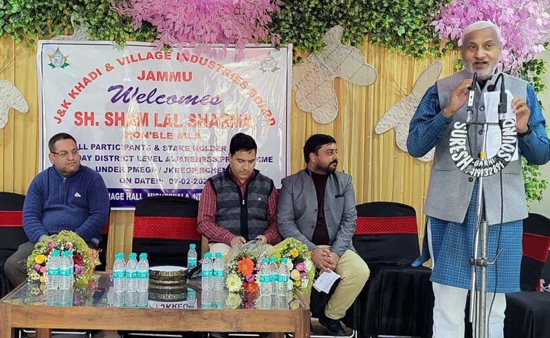 JAMMU, Feb 7: Member Legislative Assembly (MLA) Jammu North, Sham Lal Sharma, today presided over an awareness camp at Mishriwala, organized by the J&K Khadi and Village Industries Board (KVIB) to promote entrepreneurship and employment opportunities, especially for women and marginalized communities.