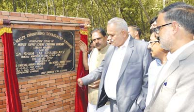 ANANTNAG, Oct 5: Minister for PHE, Irrigation & Flood Control, Sham Lal Choudhary today during his extensive tour of Anantnag district laid the foundation stone of three Water Supply Schemes including WSS Chirhama-Bonagam, WSS Kachipora-Baghatpora and WSS Levdora-Kuchipora. The Minister also inspected various PHE installations in the district.