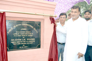 JAMMU, June 16: Minister for PHE, Irrigation and Flood Control Sham Lal Sharma today laid foundation stone of PHE Rest House to be constructed at an estimated cost of Rs. 16.25 lakh and additional three class rooms at Middle School Jourian under Sarav Shiksha Abhiyan (SSA) at Jourian.