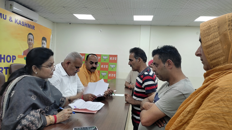 JAMMU, May 27: Sham Choudhary, J&K BJP vice-president and former Minister, Priya Sethi, National Executive Member and former Minister and Munish Sharma, BJP All Mocha Incharge, listened to the public grievances and took up the same with the concerned officials for early solution.