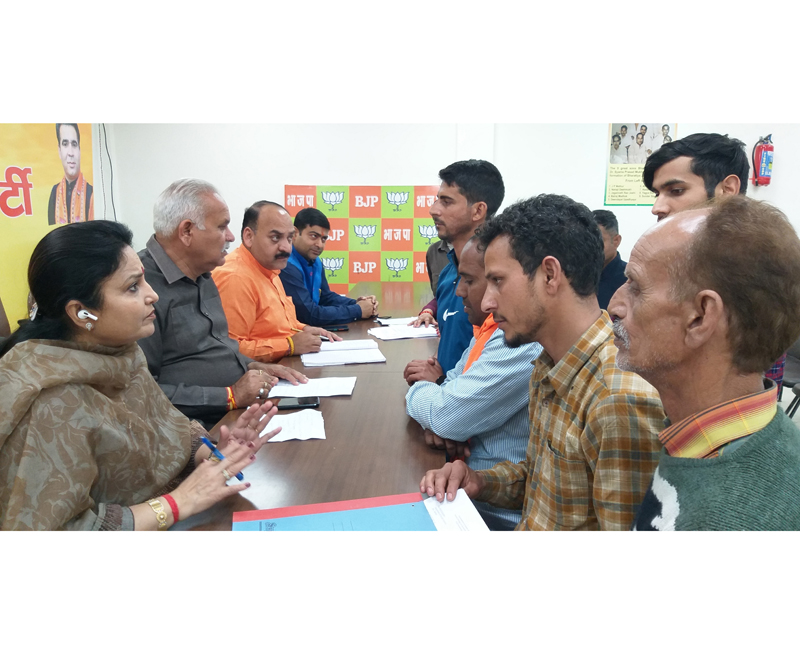 Numerous individuals and deputations visited the BJP office to meet the party leaders and narrate their woes and problems. The issues presented by common masses before the senior party leaders were related to PHE, PWD, Rural Development, Revenue, Irrigation & Flood Control, Education, Agriculture etc.